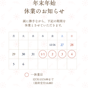 13日は16:00まで、最終受付14:00(メニューによる)までとさせていただきます。