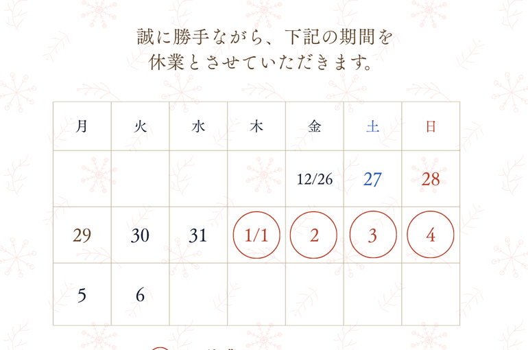 12月の営業形態と年末年始の営業時間のご案内